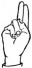 На ћирилици написано КОСТАДИН ТОМИЋ састоји се из 13 слова [?]. Исписано ћириличном једноручном азбуком за глувонеме: